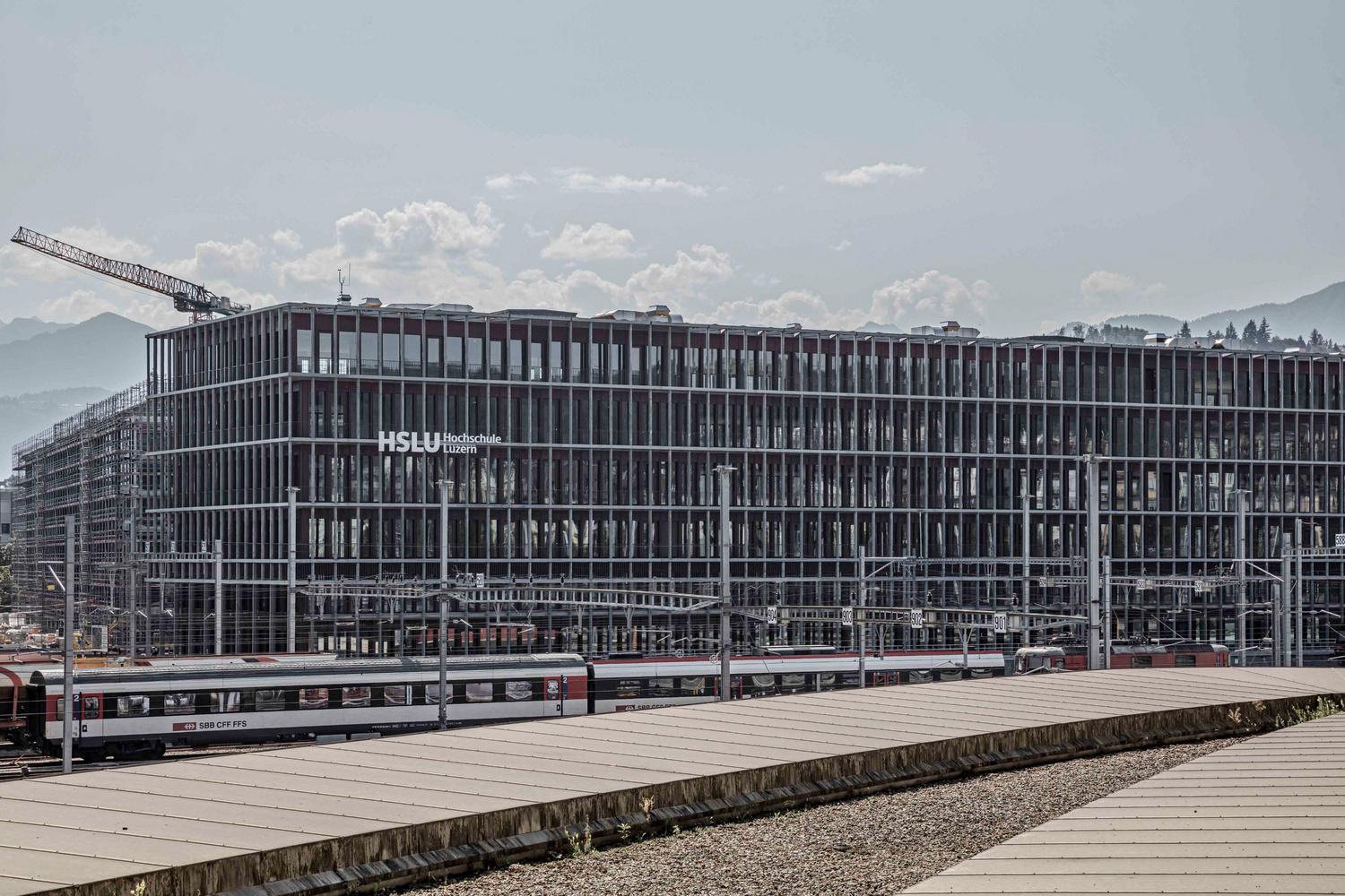 Das Baufeld A ist ein wichtiger Teil der Quartierentwicklung Rösslimatt in Luzern. Es umfasst eine Nutzfläche von rund 21'600 Quadratmetern und liegt direkt an den Bahngleisen. Der 180 Meter lange Neubau reagiert auf die Anforderungen der vorgesehenen Fachhochschulnutzung, ist jedoch als Stahlbetonskelettbau flexibel für gestaltet. Im reduzierten Untergeschoss sind Technik- und Lagerflächen untergebracht. Im Erdgeschoss sind die Mensa sowie eine Aula und die Eingangsbereiche mit repräsentativen Treppenanlagen zu finden. In den Obergeschossen befinden sich die Unterrichts- und Büroräume sowie die Bibliothek und verschiedene Begegnungszonen. Das 5. Obergeschoss beherbergt neben den Unterrichtsräumen eine Cafeteria mit grosszügiger Terrasse zur Gleisanlage.
