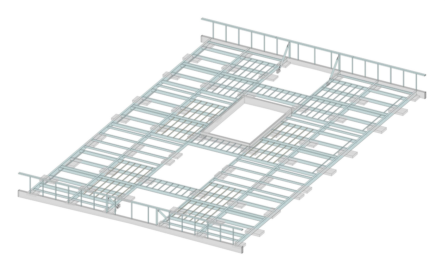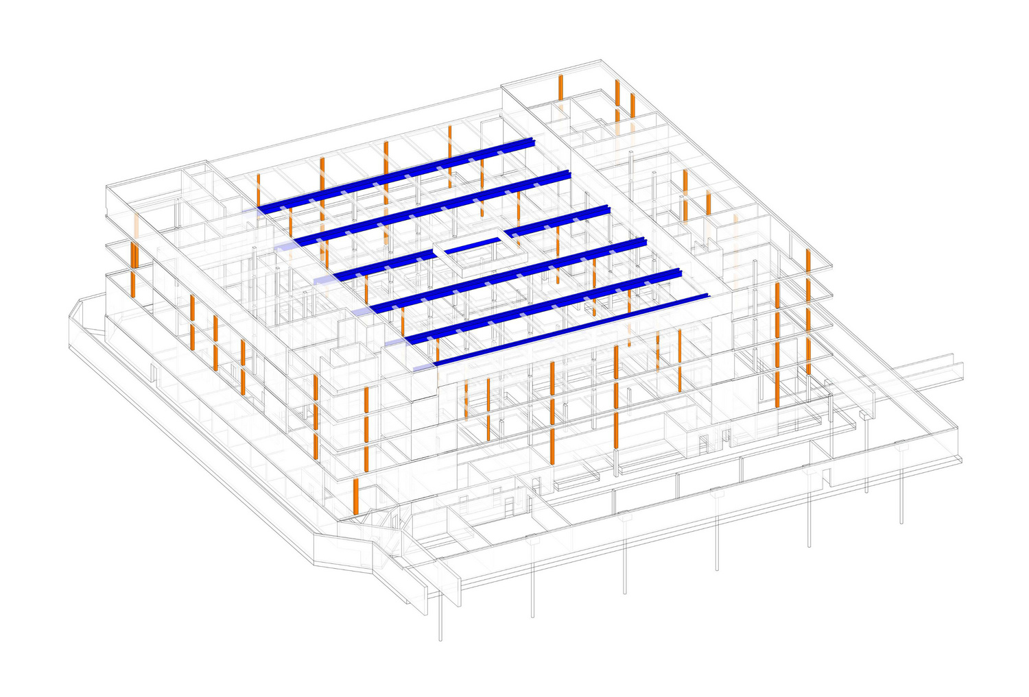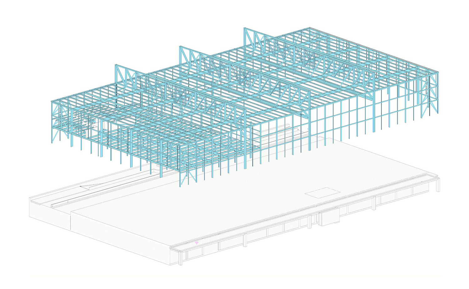 Gebäude 2, 3D-Ansicht mittlere Stahlbaukonstruktion im OG3