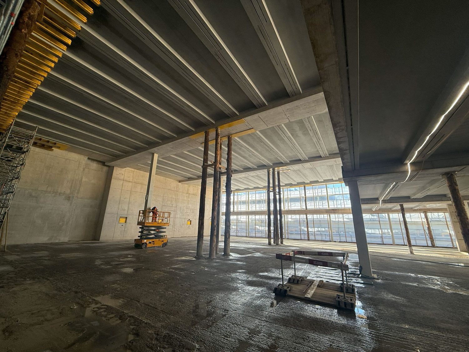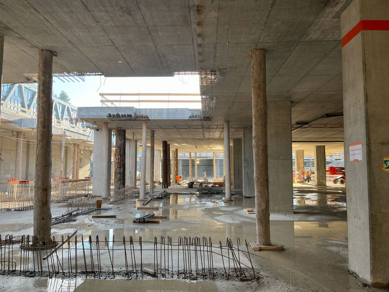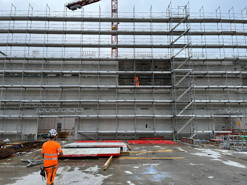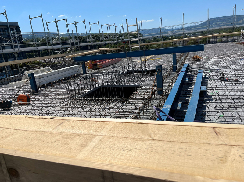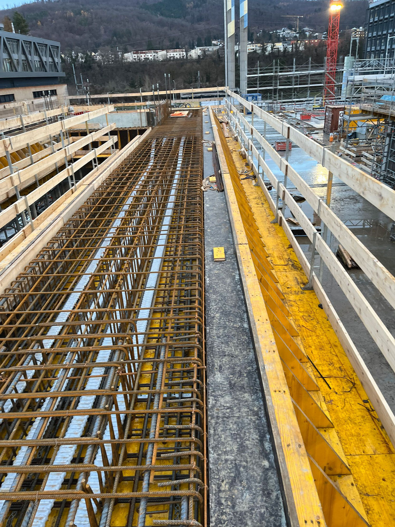 Bei den Geschossdecken des Gebäudes 2 werden die gebrauchten Stahlträger als Verbundträger eingesetzt.
