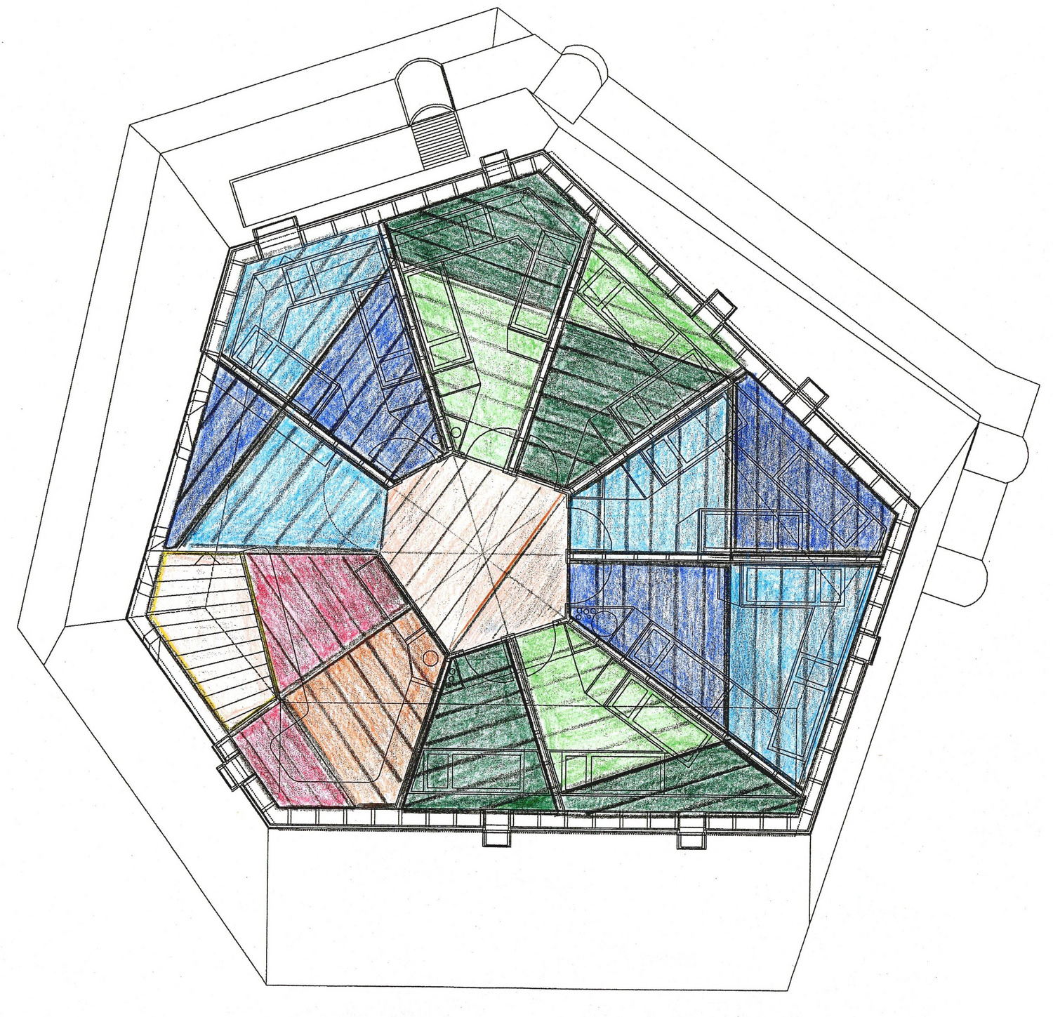 Sketch of the spanned story ceiling elements between the axes of the walls