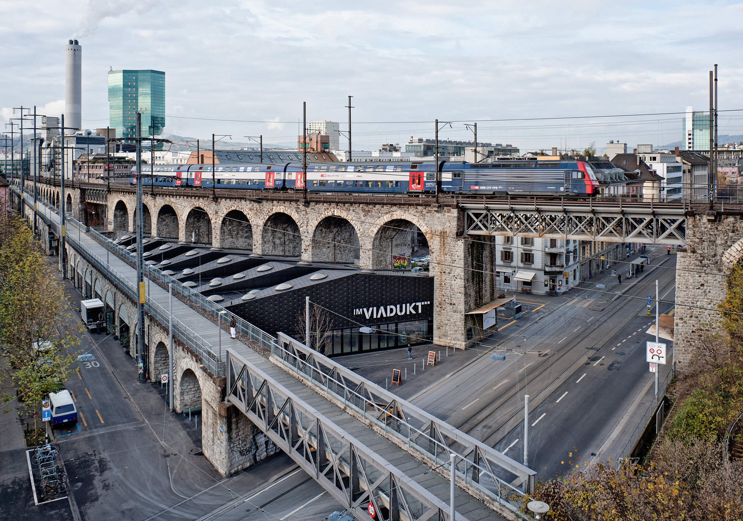 To the north west of Zurich’s main railway station a monumental railway viaduct built in 1894 separates a well-established residential area from a former industrial zone. Zurich-West’s recent transformation into a live/work neighborhood has seen the viaduct regain its former pivotal role. The arches have been redeveloped, the space in front of them upgraded and the old railway line on the Letten Viaduct converted into a connecting and leisure route. Strung out between the vertical sections of the bridge pillars, the new low-rise units accentuate the length of the structure and ensure the continued visibility and presence of the arches themselves.