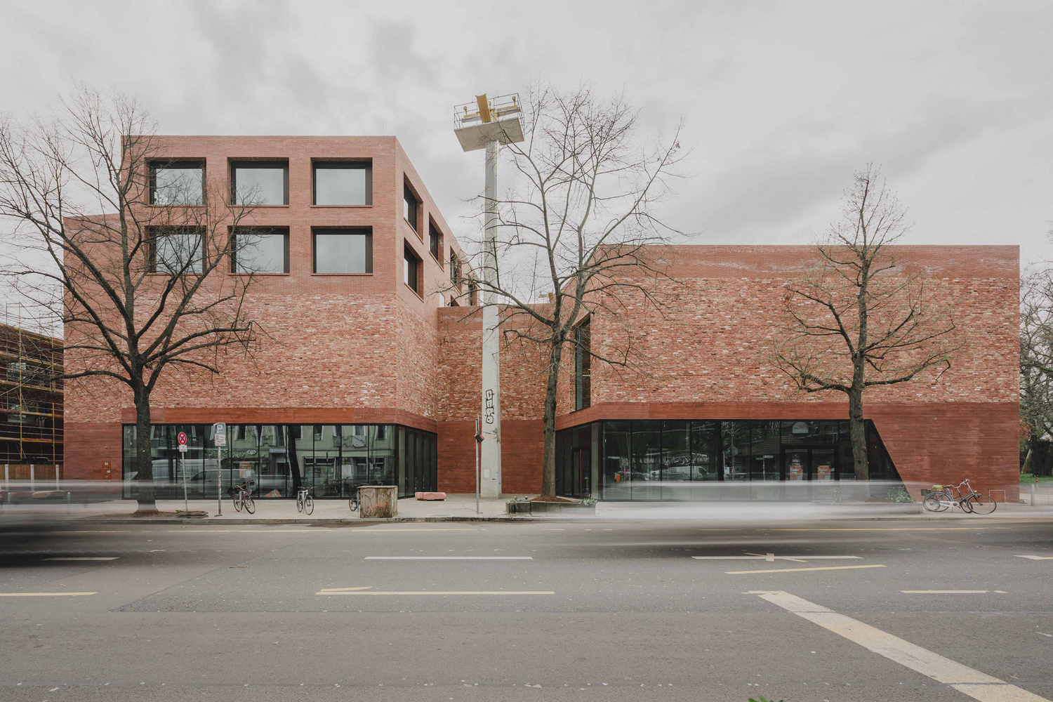 In terms of materiality, the structures combine sustainability with high standards of architectural design. The facades incorporate recycled clinker bricks to the upper stories with reddish recycled concrete at ground level. The formwork boards used to cast the first- to second-floor slab in the Spore building were reused in the substructure of the canopy on the roof terrace.