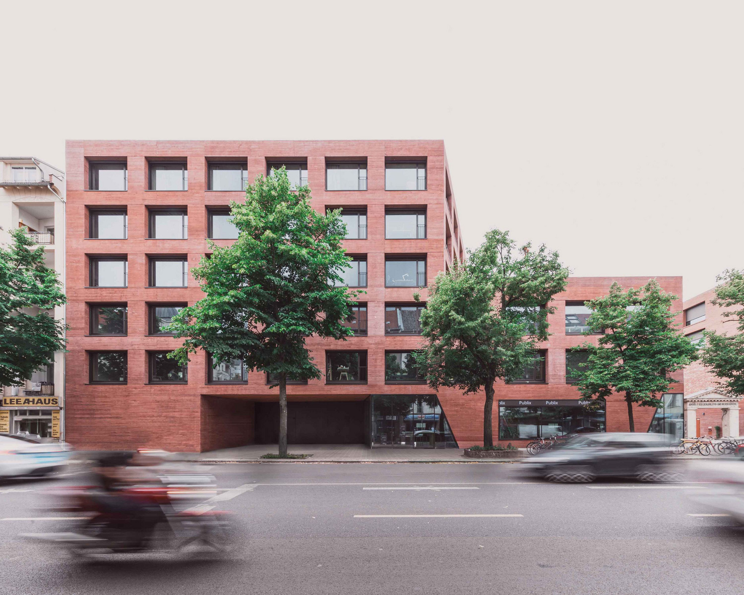 Two striking newbuilds, Spore Initiative and Publix, form a not-for-profit culture hub that more than makes its mark on Hermannstrasse in Berlin’s Neukölln district. Slightly offset, the two buildings open up the streetscape to create a shared piazza that cleverly integrates the old stone gateway to the adjacent former cemetery.