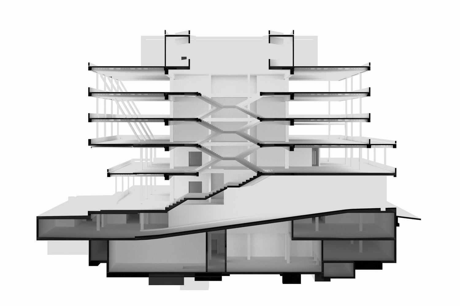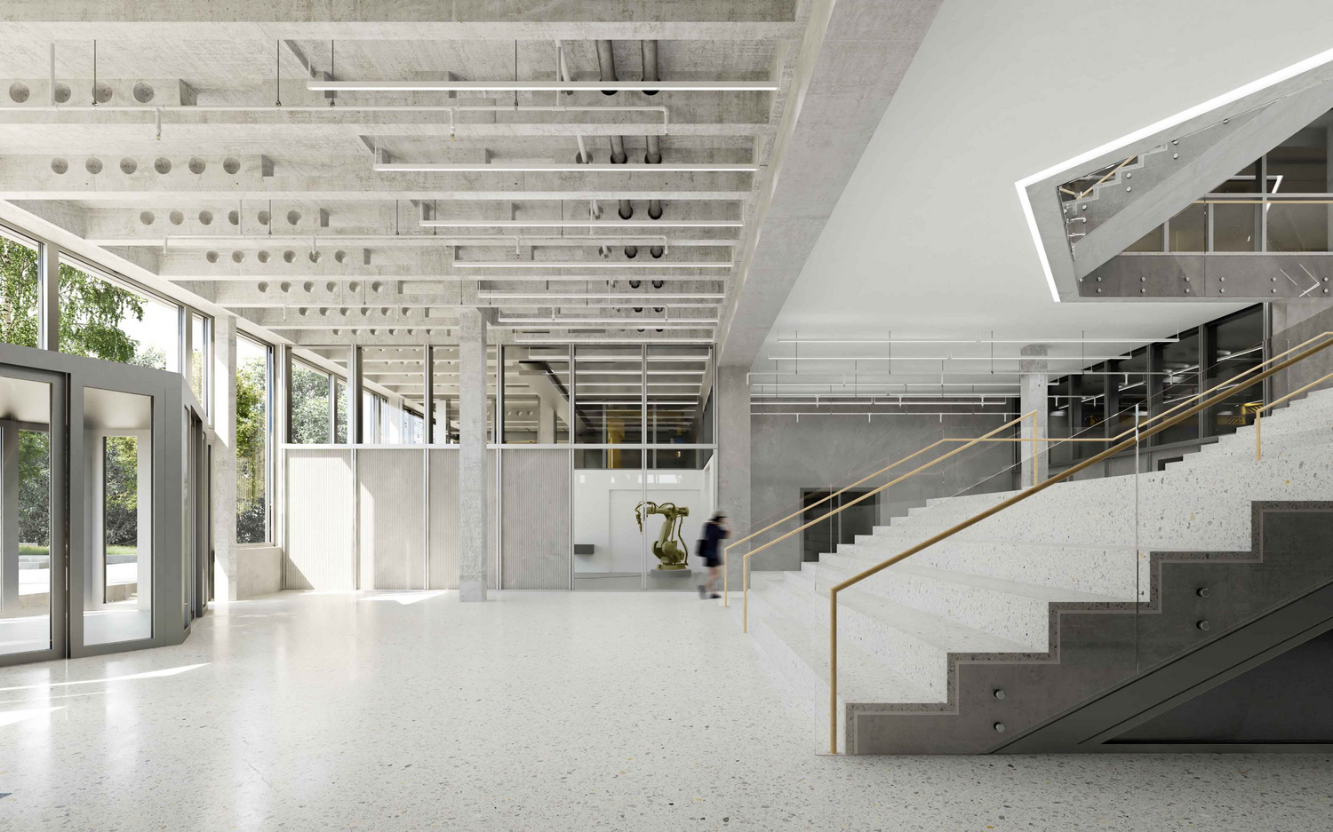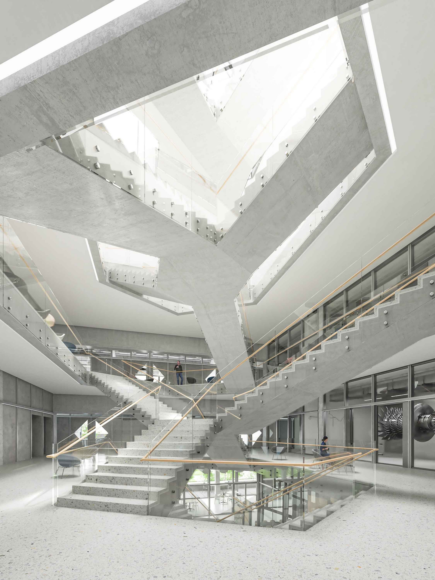 Rendering view of the central staircase of the large laboratory building