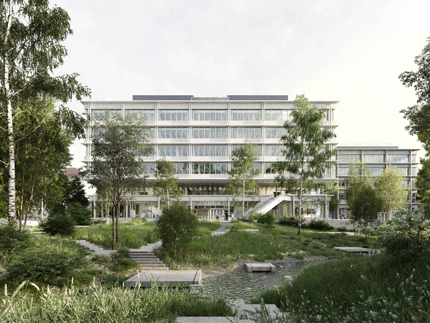 Alongside these two newbuilds, the project involves the development of a campus park leading to the naturally redesigned banks of the Eulach river.