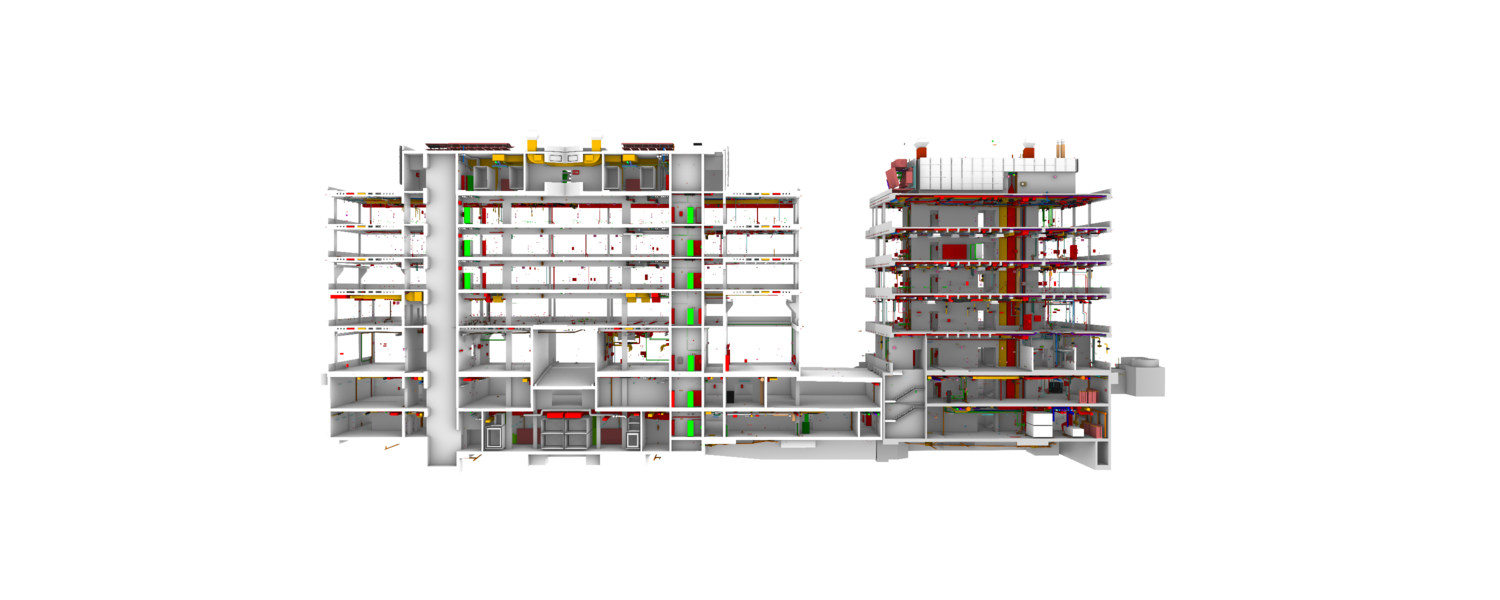 Longitudinal section from the BIM model showing the two new laboratory buildings