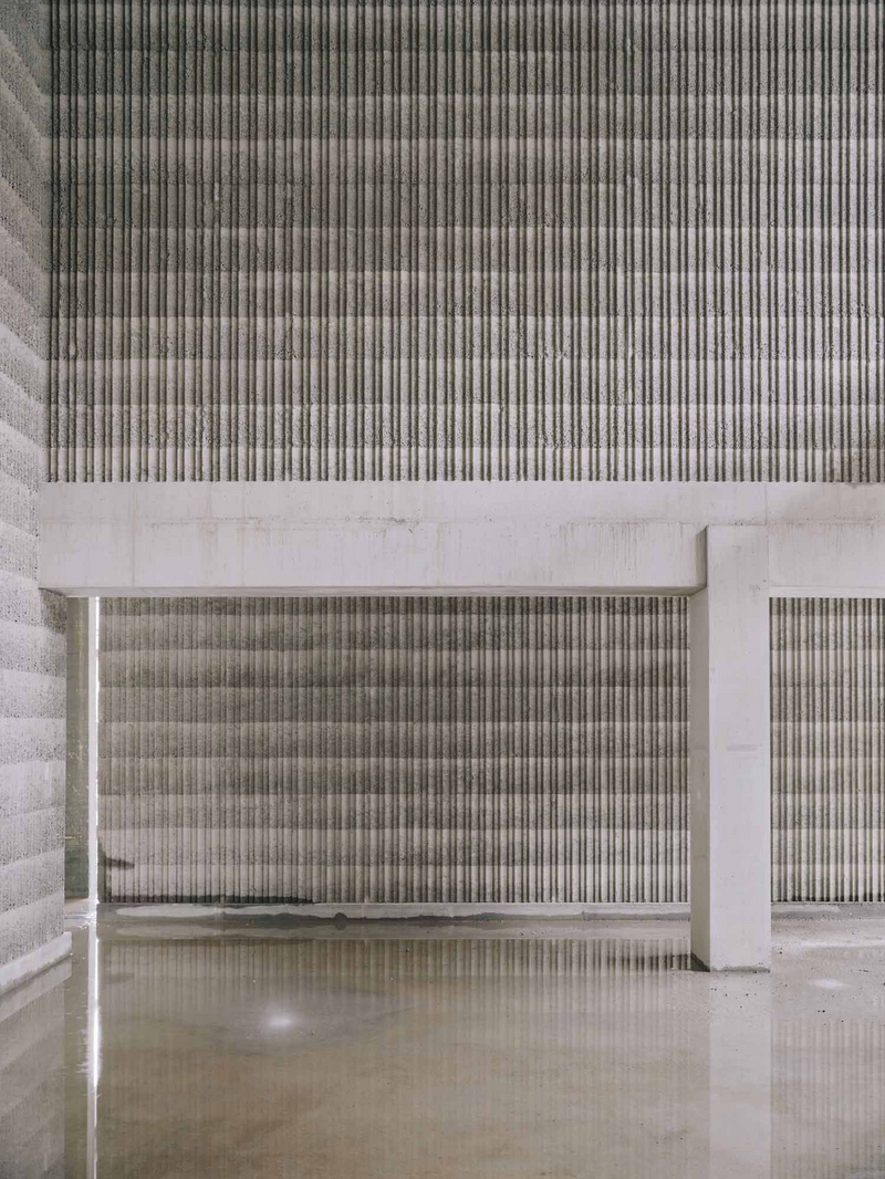 The Order of the Sisters of Mercy of the Holy Cross has been based in Ingenbohl above Brunnen for over 170 years. Now the convent complex has been extended by the addition of a seven-story residential retirement and nursing home. Set on the eastern slope of the hill, it cleverly connects the lower level of the new visitor car park to the convent plateau. The new building comprises a roof-top plant and service level, six upper stories, a ground floor and four basement levels partially set back into the hillside. Its facades are structured by a grid of visible columns, floor and balcony slabs that traces the flow of forces through the structure. Two colonnades, on the eastern and western sides of the building, form a covered passageway and underline the significance of the building’s plinth. Stamped trass lime, a traditional, local material, was chosen as a sustainable alternative to the classic fair-faced concrete finish. The addition of lime and trass reduces the amount of cement used by half and so significantly improves CO2 balance.
