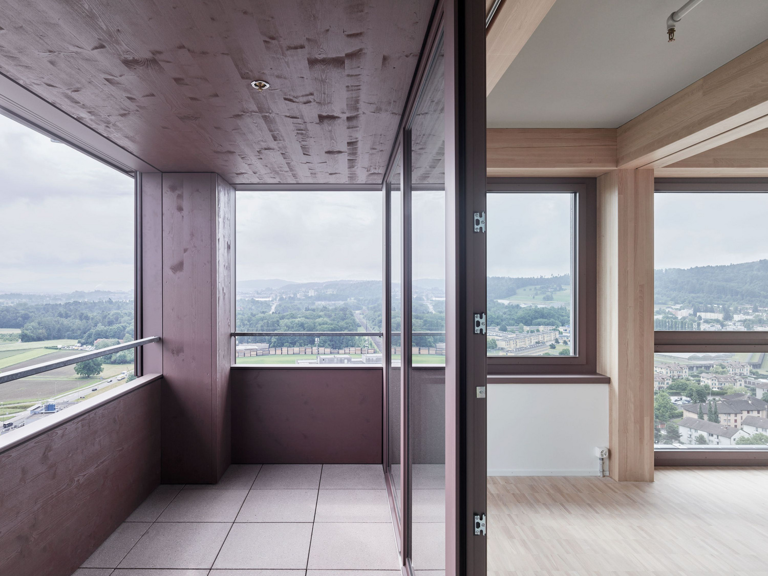 An innovative hybrid timber tower developed and designed by a civil engineering consortium of Schnetzer Puskas Ingenieure and B3Kolb in partnership with Boltshauser Architekten is currently taking shape on the Zwhatt site adjacent to Regensdorf railway station. Topping out at 75 meters, the building will new standards in sustainable high-rise housing. The basement floors, lower floors and reinforcing circulation core are built in concrete, while the upper floors feature timber load-bearing columns and facade elements with hybrid slabs. The design offers CO2 savings of around 20% over the building’s 60-year life cycle when compared with a solid construction technique. The entire timber load-bearing system is constructed in molded laminated timber (Fagus Suisse).